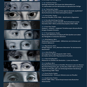 Eine Vorlesungsreihe im Brandenburg Museum für Zukunft, Gegenwart und Geschichte (Potsdam) rückt vom 14. April bis 14. Juni 2026 die Frauen der Hohenzollern in den Mittelpunkt und zeigt ihre Rolle in dynastischen Netzwerken, politischer Einflussnahme und kulturellem Austausch vom 15. bis ins 20. Jahrhundert.